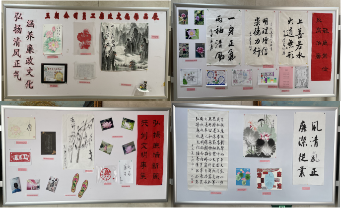本次主題廉政文化作品展旨在推動黨史學習教育與正風肅紀工作相結(jié)合,筑牢黨員干部廉潔履職思想防線,不斷提升公司廉政文化建設(shè)水平。5月初面向全體員工開展廉政文化作品征集活動以來,得到了廣大職工的積極響應(yīng)?;顒庸舱骷桨瑫ā⒗L畫、剪紙、攝影、工藝品制作、手抄報等多種形式的廉政作品30余件,經(jīng)過集體評選,選出一、二、三等獎和紀念獎作品分列四組展板,全部進行展出。