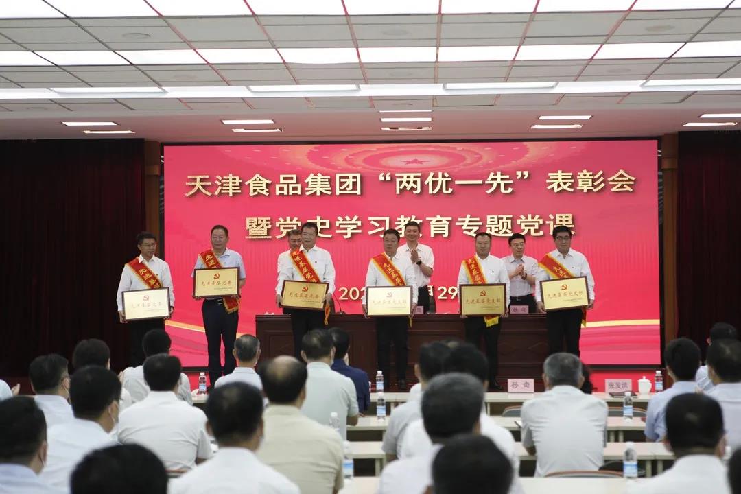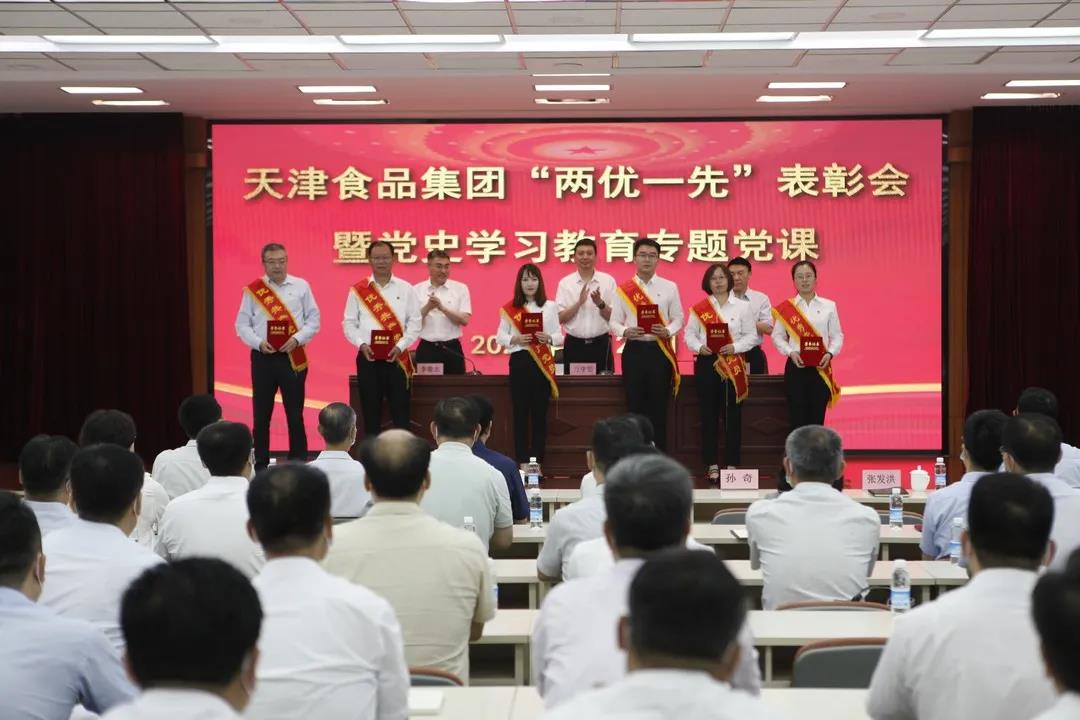 6月29日上午,天津食品集團(tuán)召開“兩優(yōu)一先”表彰會暨黨史學(xué)習(xí)教育專題黨課。熱烈慶祝中國共產(chǎn)黨成立100周年,總結(jié)黨史學(xué)習(xí)教育階段工作,部署下階段工作重點(diǎn),表彰近一年來涌現(xiàn)出的先進(jìn)基層黨組織、優(yōu)秀共產(chǎn)黨員和黨務(wù)工作者,啟動(dòng)“奮戰(zhàn)下半年,確保開好局”活動(dòng),并由集團(tuán)黨委書記、董事長萬守朋講授黨史學(xué)習(xí)教育專題黨課。