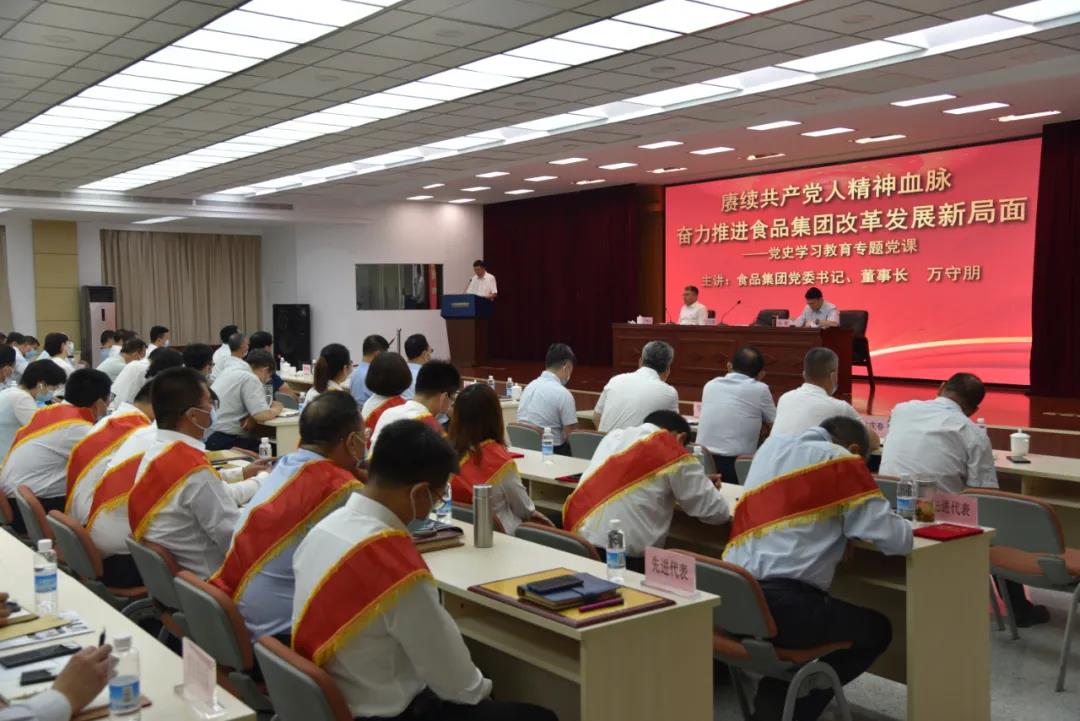 萬守朋以《賡續(xù)共產(chǎn)黨人精神血脈 奮力推進(jìn)食品集團(tuán)改革發(fā)展新局面》為題,圍繞銘記黨的奮斗歷程,矢志不渝推進(jìn)黨的偉大事業(yè);集團(tuán)改革發(fā)展的生動(dòng)實(shí)踐,彰顯集團(tuán)系統(tǒng)各級黨組織的凝聚力戰(zhàn)斗力和廣大黨員的先鋒本色;大力弘揚(yáng)中國共產(chǎn)黨人的擔(dān)當(dāng)精神,再接再厲、攻堅(jiān)克難,建功新時(shí)代等三方面,講授了黨史學(xué)習(xí)教育專題黨課,激勵(lì)廣大黨員干部職工進(jìn)一步奮發(fā)有為,為集團(tuán)“十四五”開好局,起好步再做新的貢獻(xiàn)。
