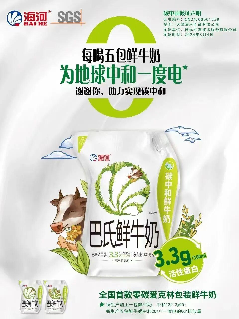 產(chǎn)品全生命周期碳中和典范:海河乳品公司不僅在生產(chǎn)端發(fā)力,更將綠色理念延伸至產(chǎn)品本身。在產(chǎn)品包裝上,通過采用可回收利用的玻璃瓶包裝,以及采用含30%碳酸鈣成分的可降解愛克林包裝等方式,積極減輕包裝殘留對環(huán)境的負(fù)擔(dān)。2024年,公司成功推出全國首款“碳中和”巴氏鮮牛奶,成為行業(yè)綠色產(chǎn)品創(chuàng)新的典范。產(chǎn)品通過對全生命周期碳足跡進(jìn)行精準(zhǔn)核算與管控,最終通過購買碳匯等方式實(shí)現(xiàn)碳中和,為消費(fèi)者提供了真正意義上的綠色消費(fèi)選擇,也為乳制品行業(yè)的產(chǎn)品碳足跡管理樹立了新標(biāo)桿。
