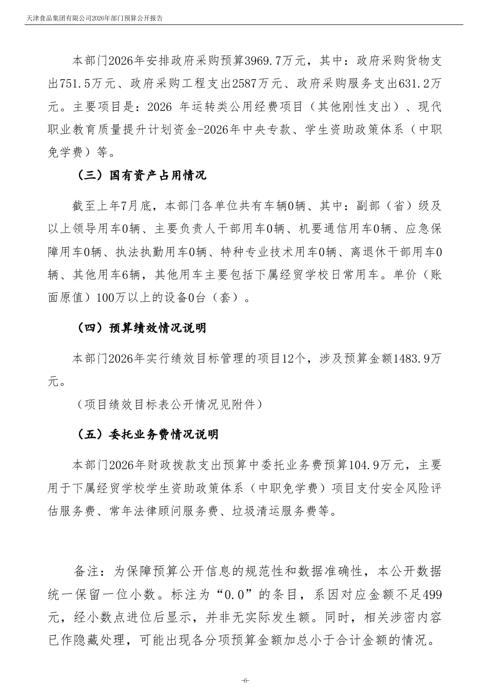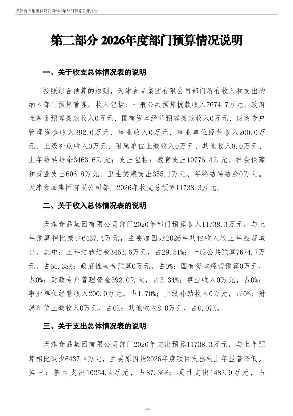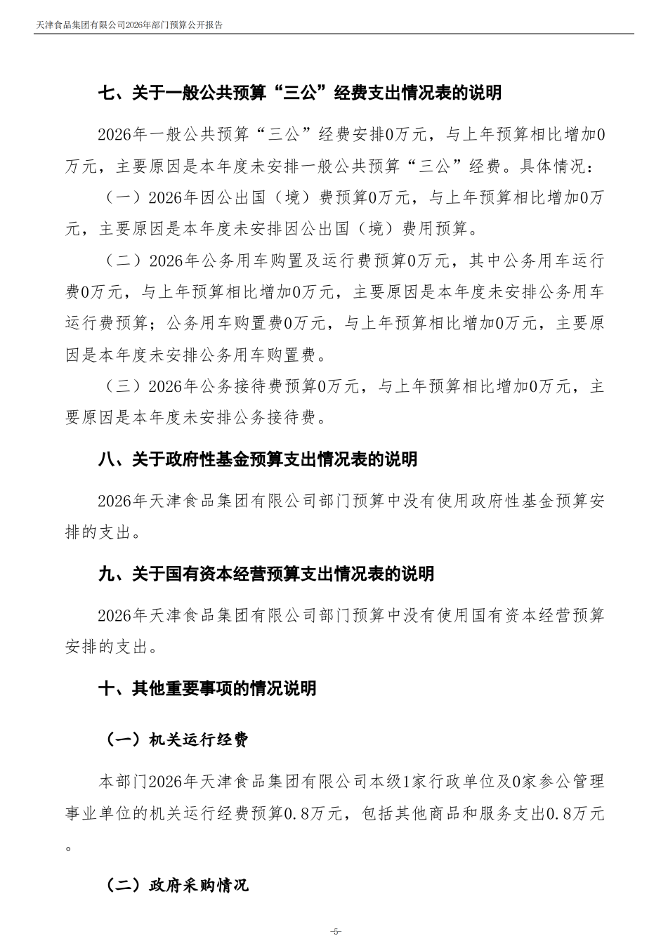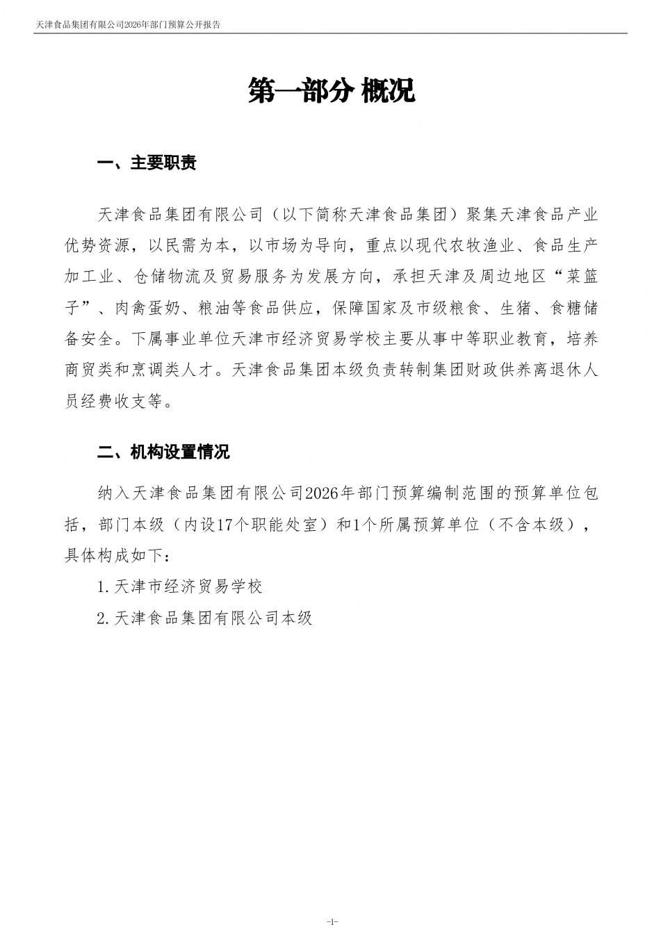 天津食品集團(tuán)有限公司2026年度部門預(yù)算