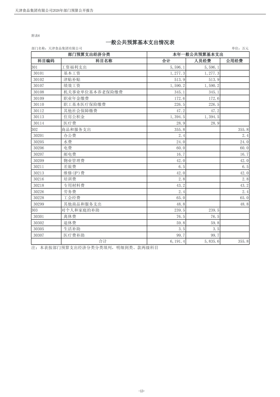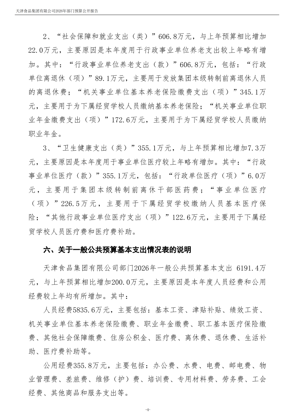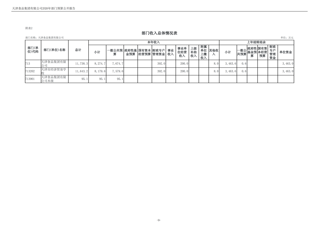 天津食品集團(tuán)有限公司2026年度部門預(yù)算