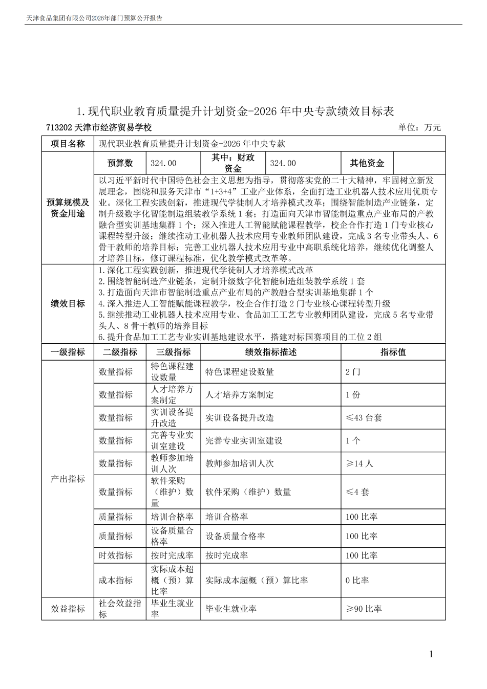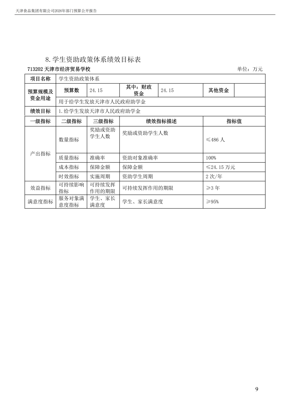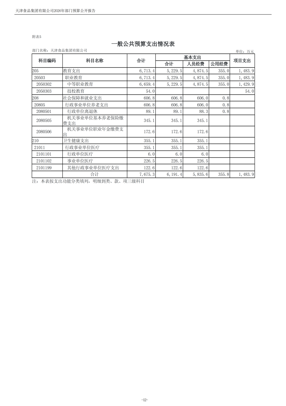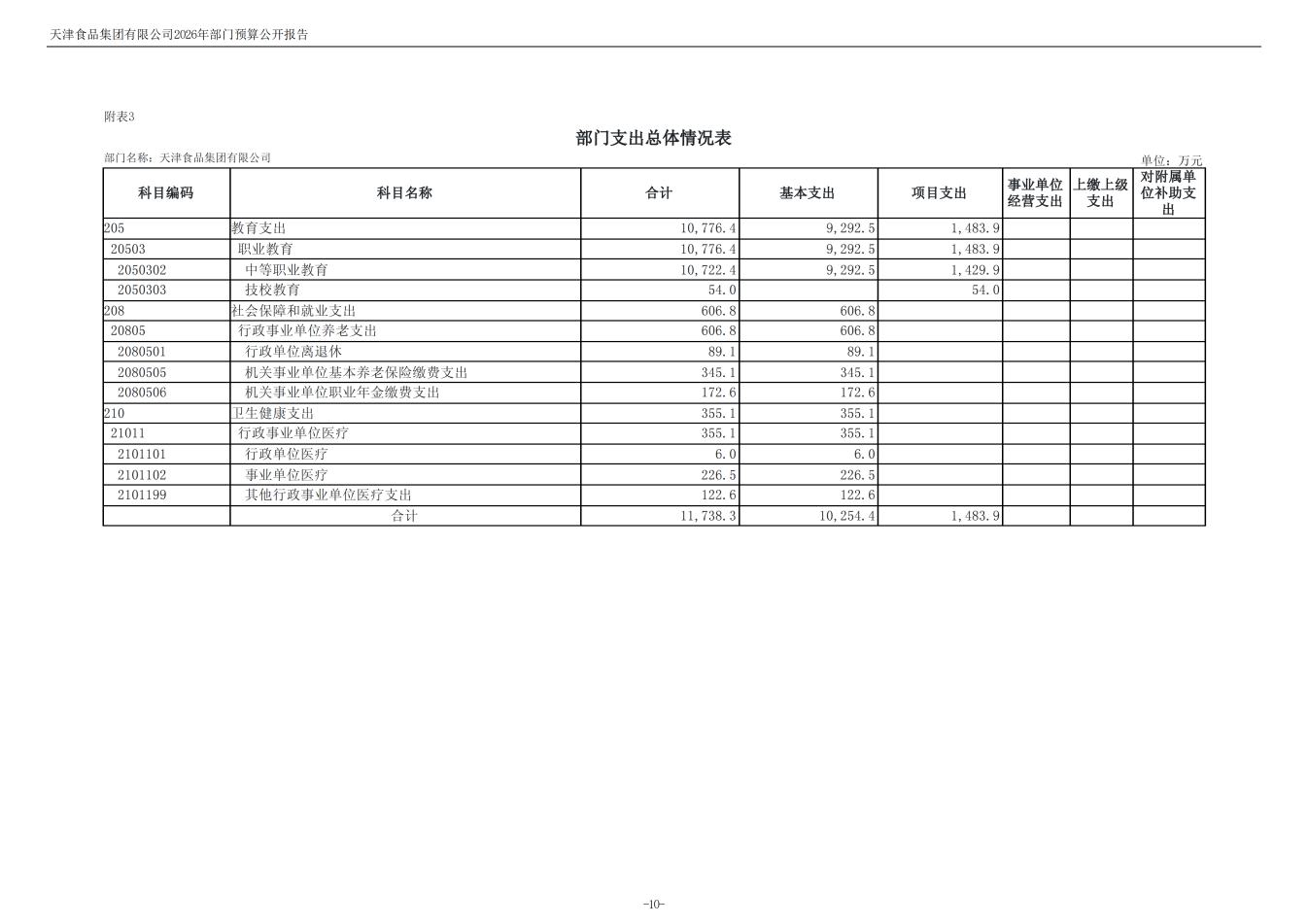 天津食品集團(tuán)有限公司2026年度部門預(yù)算