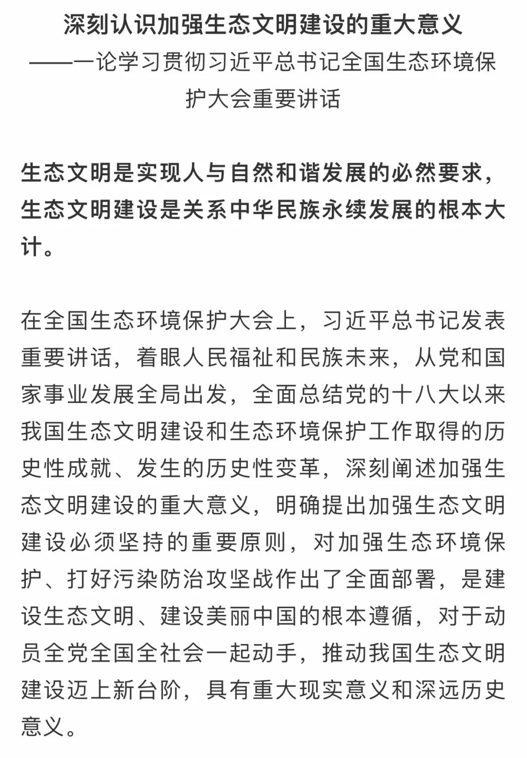 人民日報(bào)評論員:一、二論學(xué)習(xí)貫徹習(xí)近平總書記全國生態(tài)環(huán)境保護(hù)大會(huì)重要講話