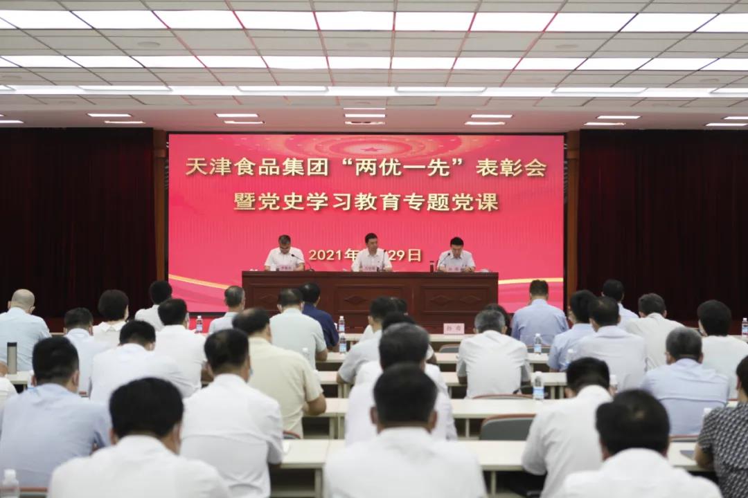 6月29日上午,天津食品集團(tuán)召開“兩優(yōu)一先”表彰會暨黨史學(xué)習(xí)教育專題黨課。熱烈慶祝中國共產(chǎn)黨成立100周年,總結(jié)黨史學(xué)習(xí)教育階段工作,部署下階段工作重點(diǎn),表彰近一年來涌現(xiàn)出的先進(jìn)基層黨組織、優(yōu)秀共產(chǎn)黨員和黨務(wù)工作者,啟動(dòng)“奮戰(zhàn)下半年,確保開好局”活動(dòng),并由集團(tuán)黨委書記、董事長萬守朋講授黨史學(xué)習(xí)教育專題黨課。