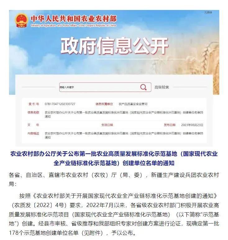 近日,農(nóng)業(yè)農(nóng)村部發(fā)布了《農(nóng)業(yè)農(nóng)村部辦公廳關(guān)于公布第一批農(nóng)業(yè)高質(zhì)量發(fā)展標準化示范基地(國家現(xiàn)代農(nóng)業(yè)全產(chǎn)業(yè)鏈標準化示范基地)創(chuàng)建單位名單的通知》,嘉立荷牧業(yè)公司榜上有名。