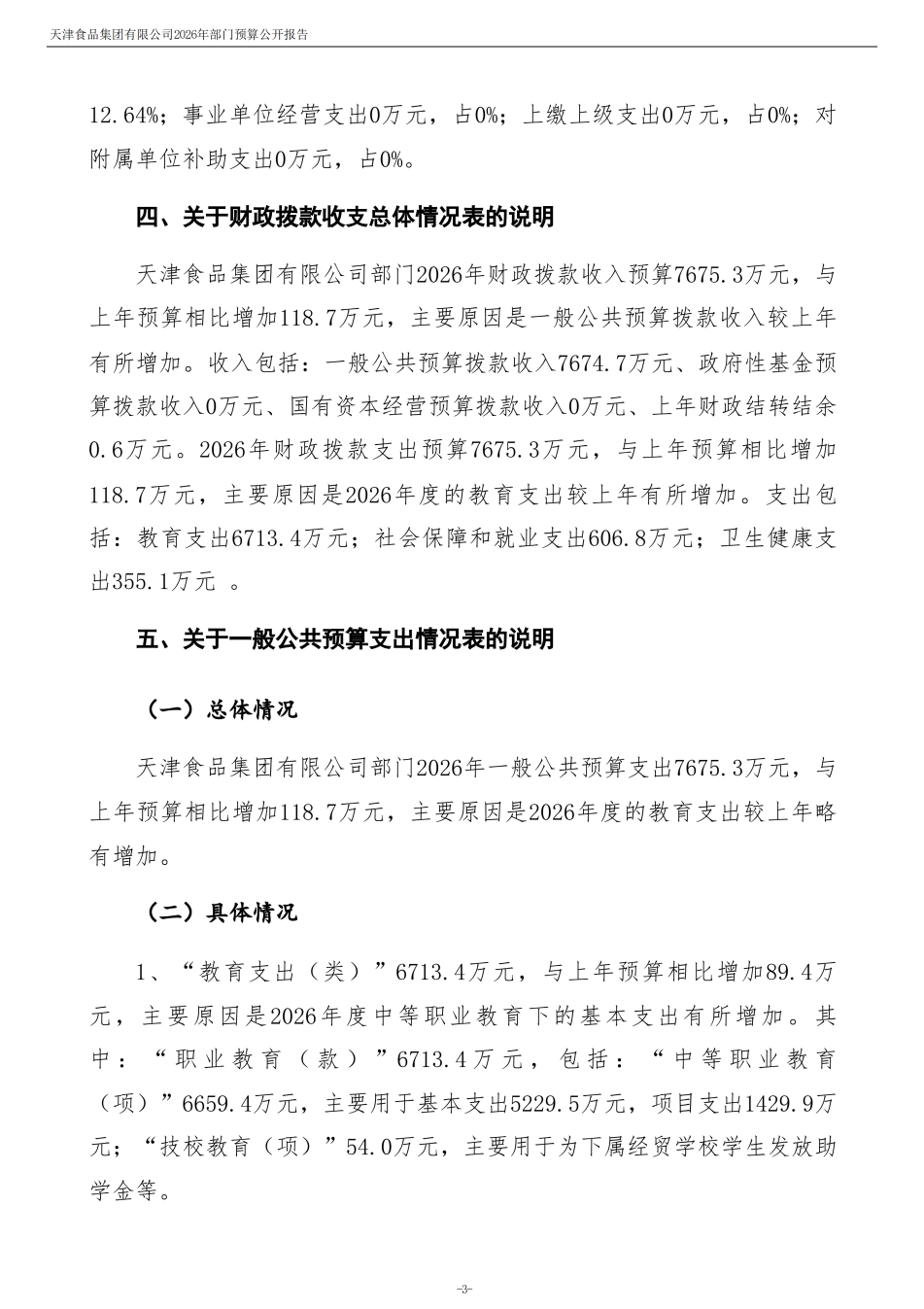 天津食品集團(tuán)有限公司2026年度部門預(yù)算